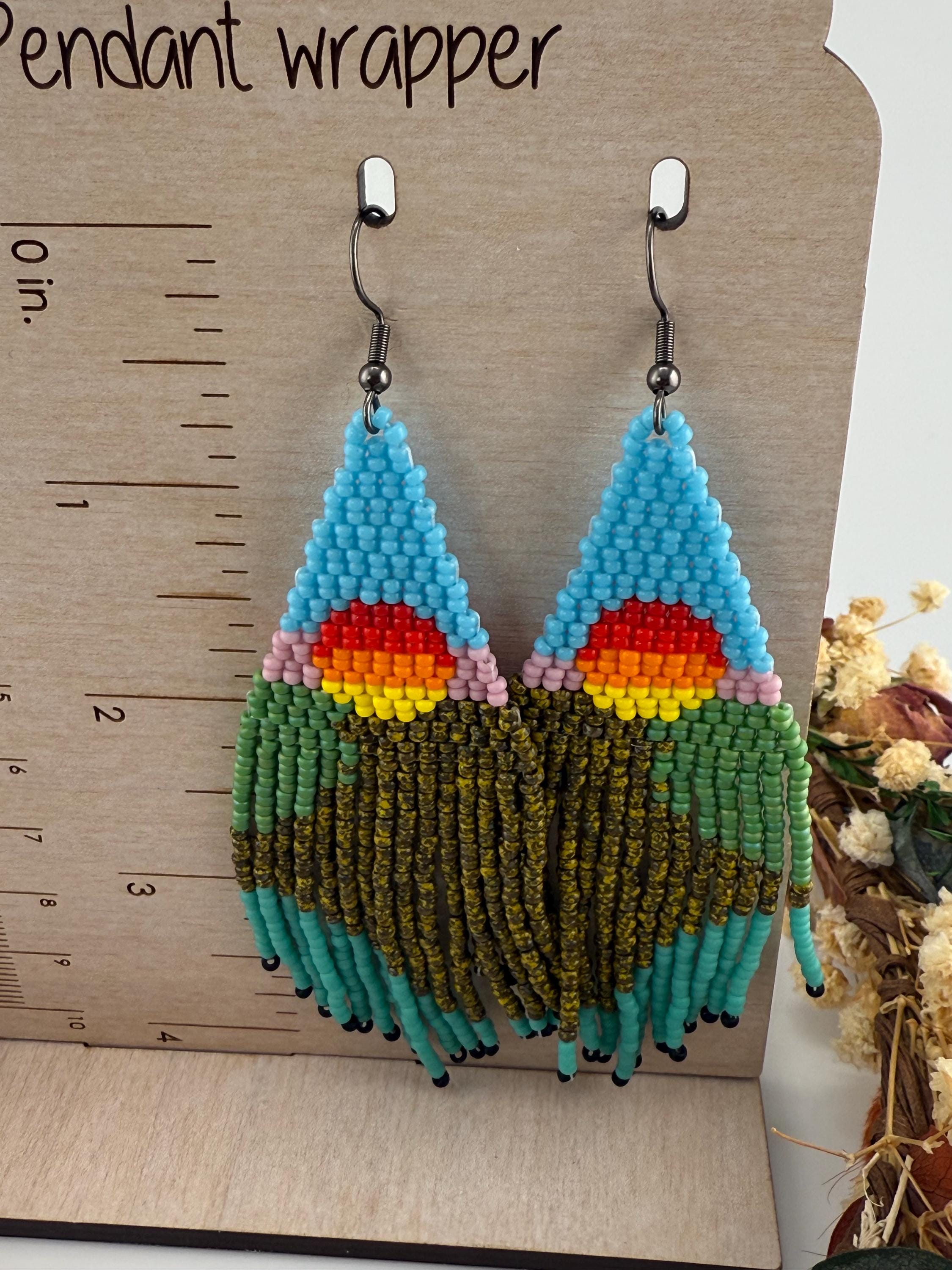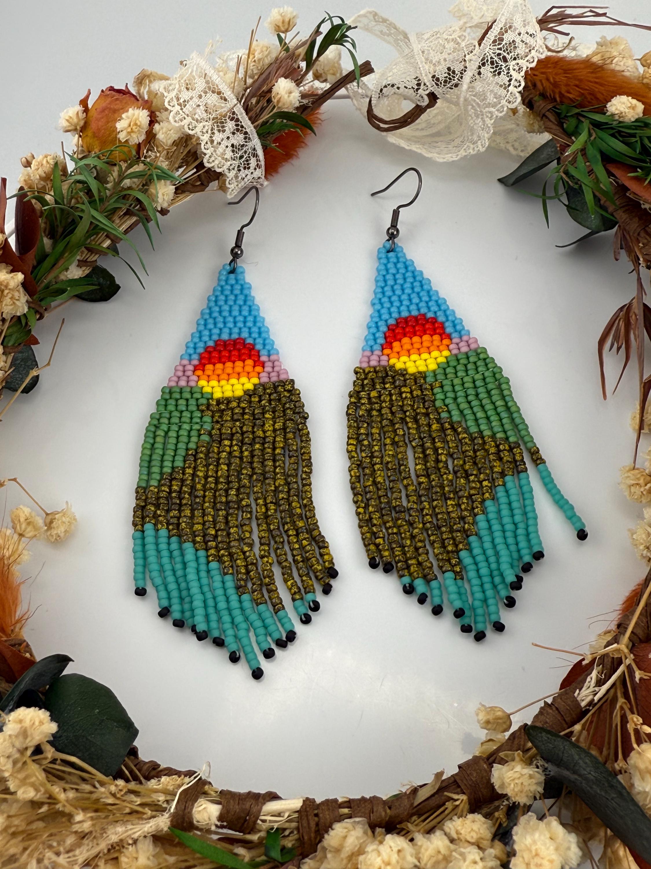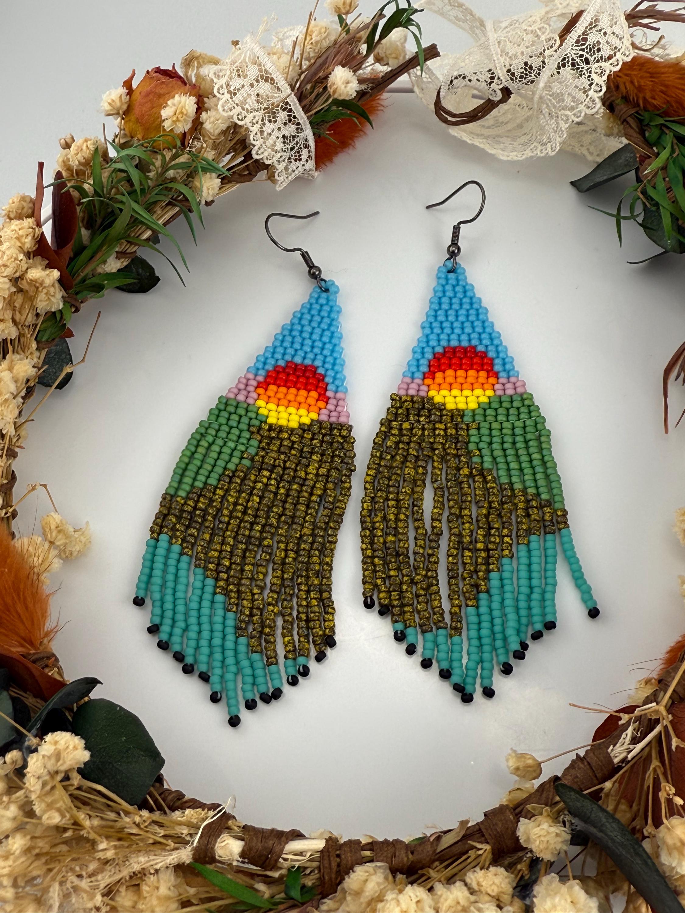 Beautiful sunsets, long roads, mountains and trees is what one sees on a Colorado adventure weekend. These earrings are every part of that.