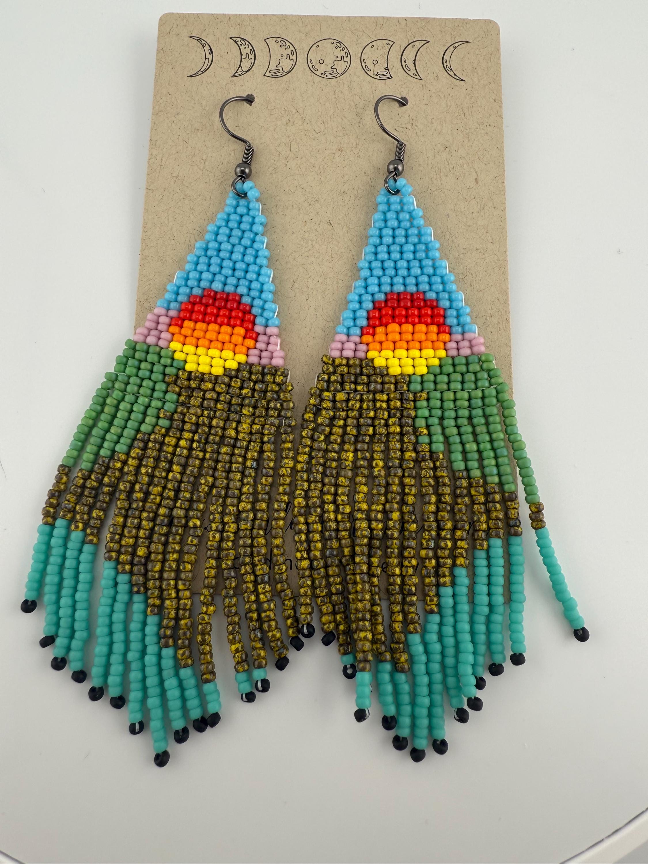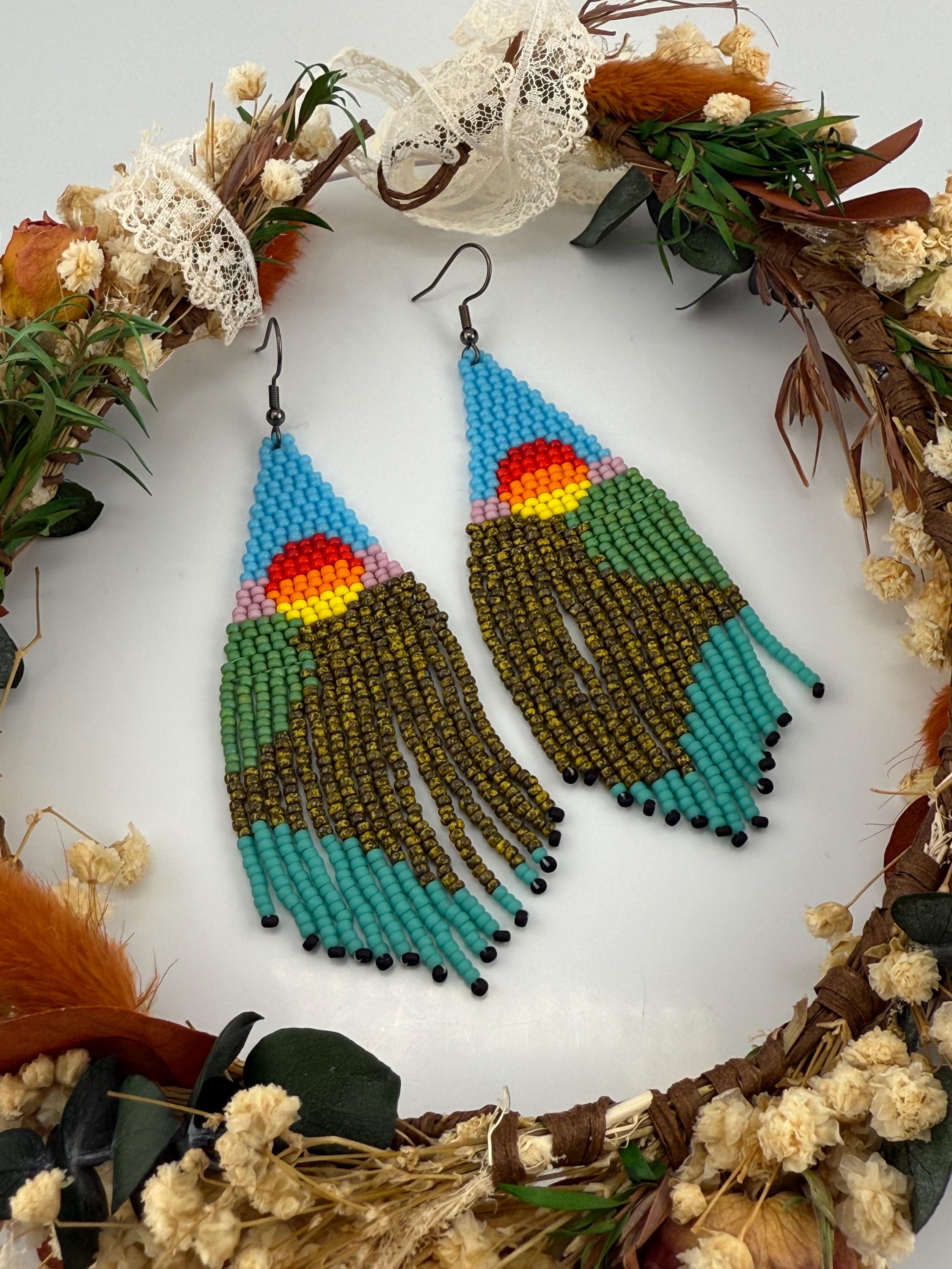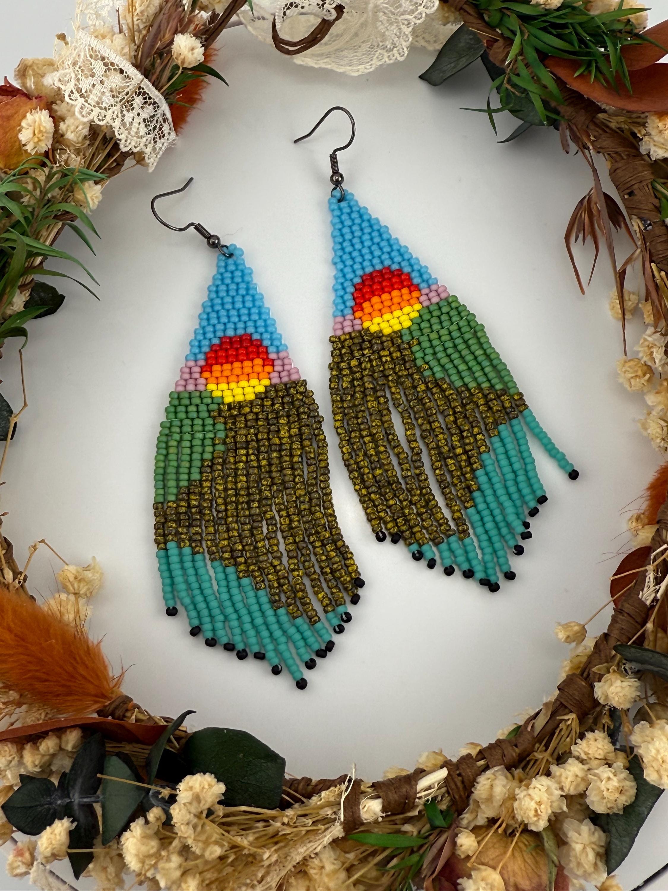 Beautiful sunsets, long roads, mountains and trees is what one sees on a Colorado adventure weekend. These earrings are every part of that.