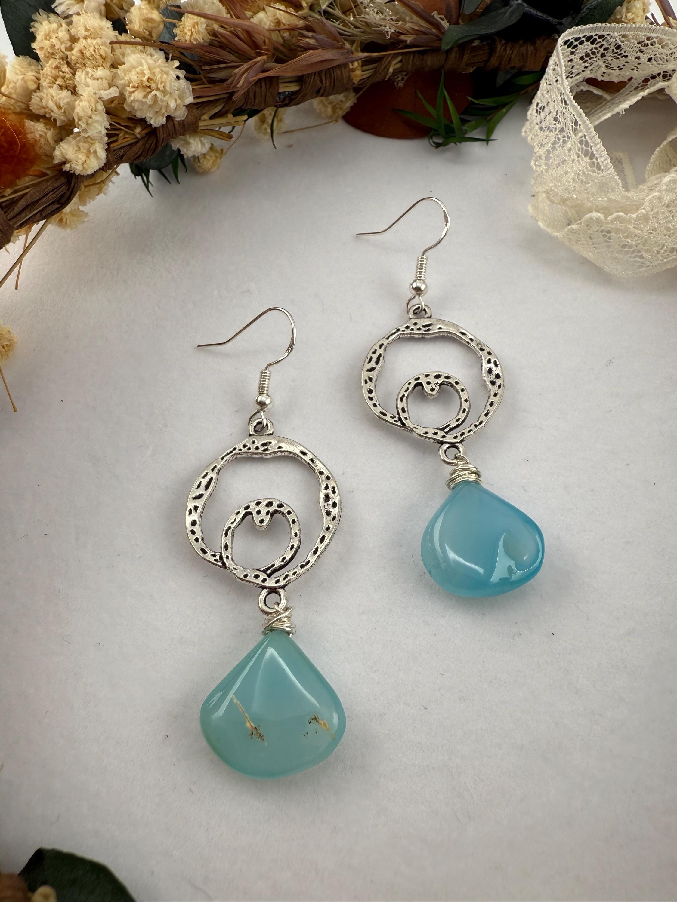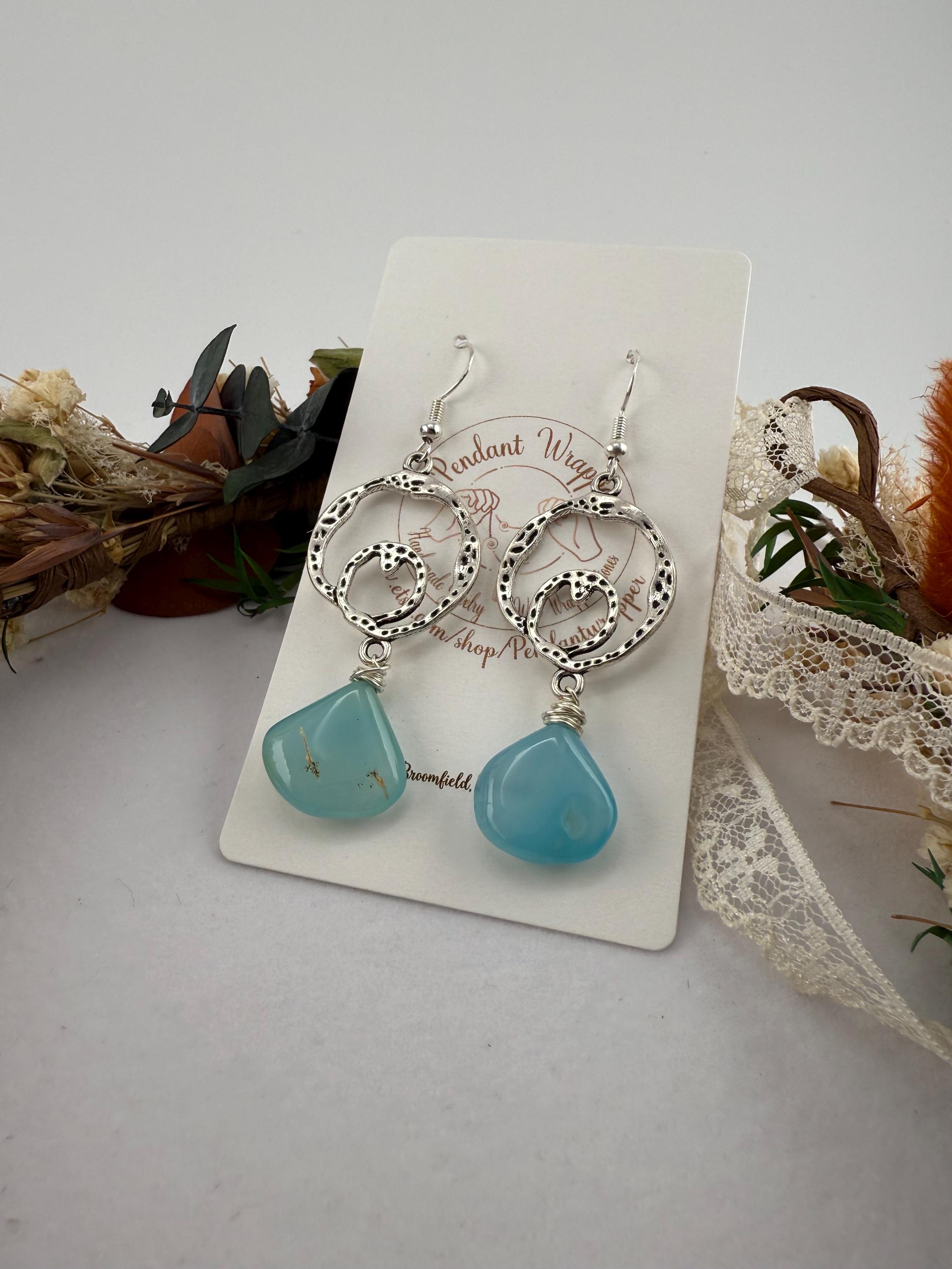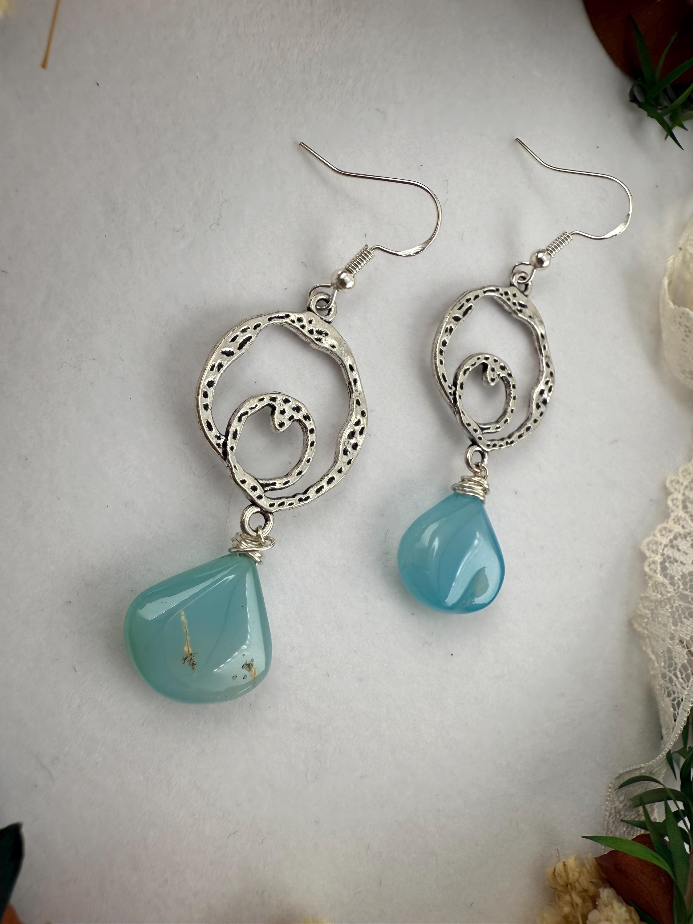 These lovely handmade earrings are so vibrantly colorful, and glorious. From the antique looking frame to the modern teardrop shape of the agate gemstone, you get nothing but win and balance with this delightful design! plus you get all of the color too; with the stunningly beautiful shade of blue!