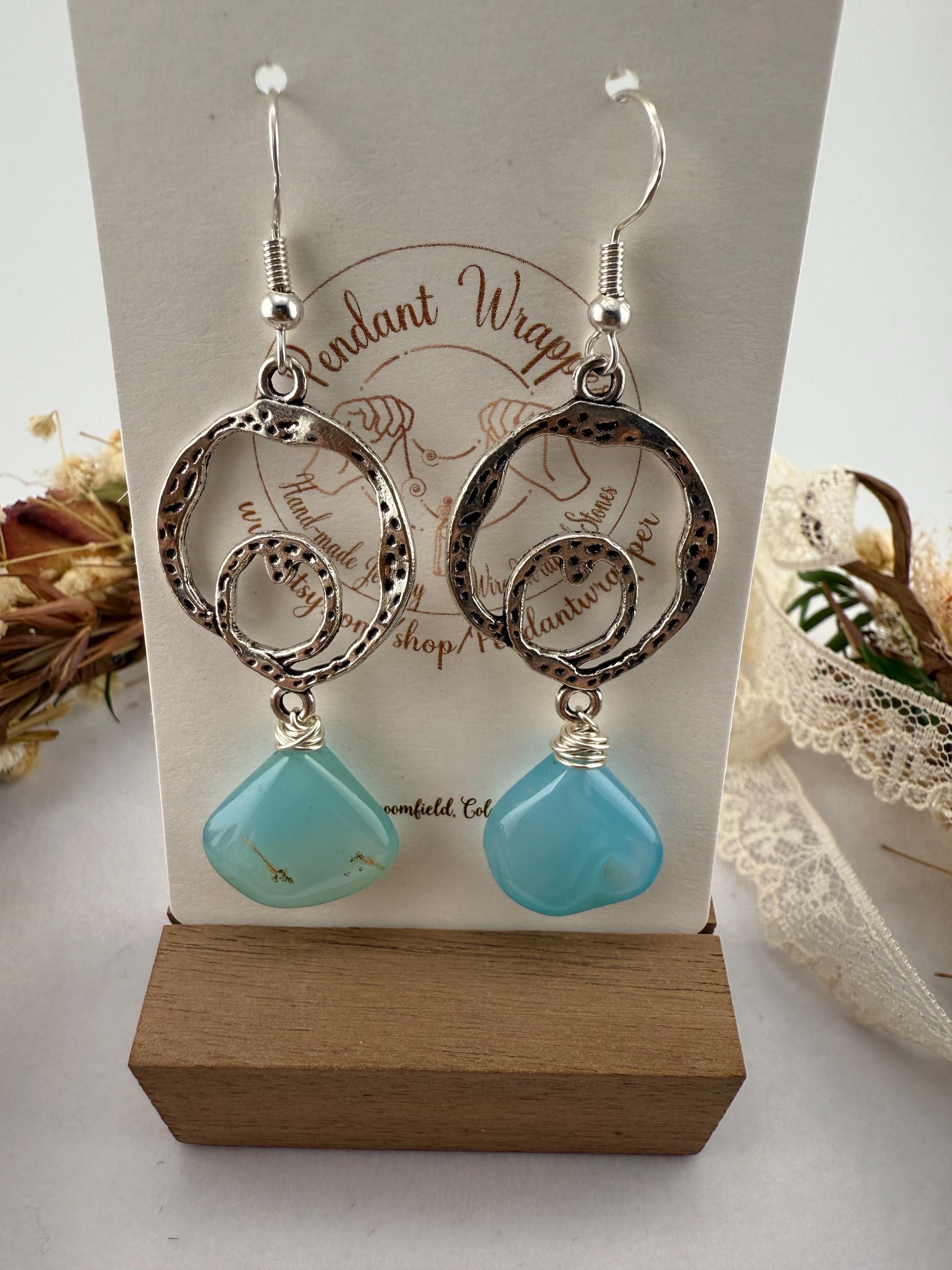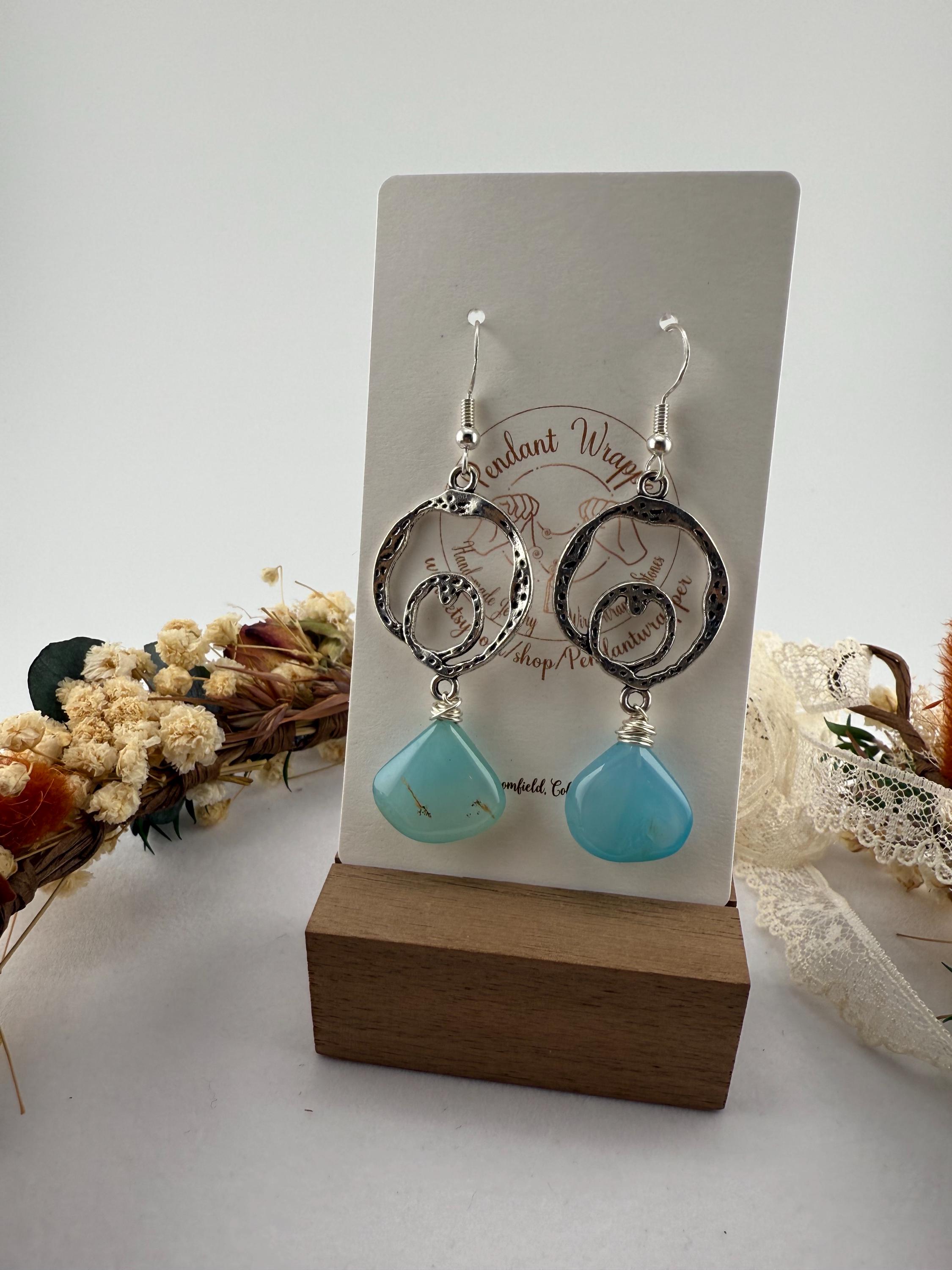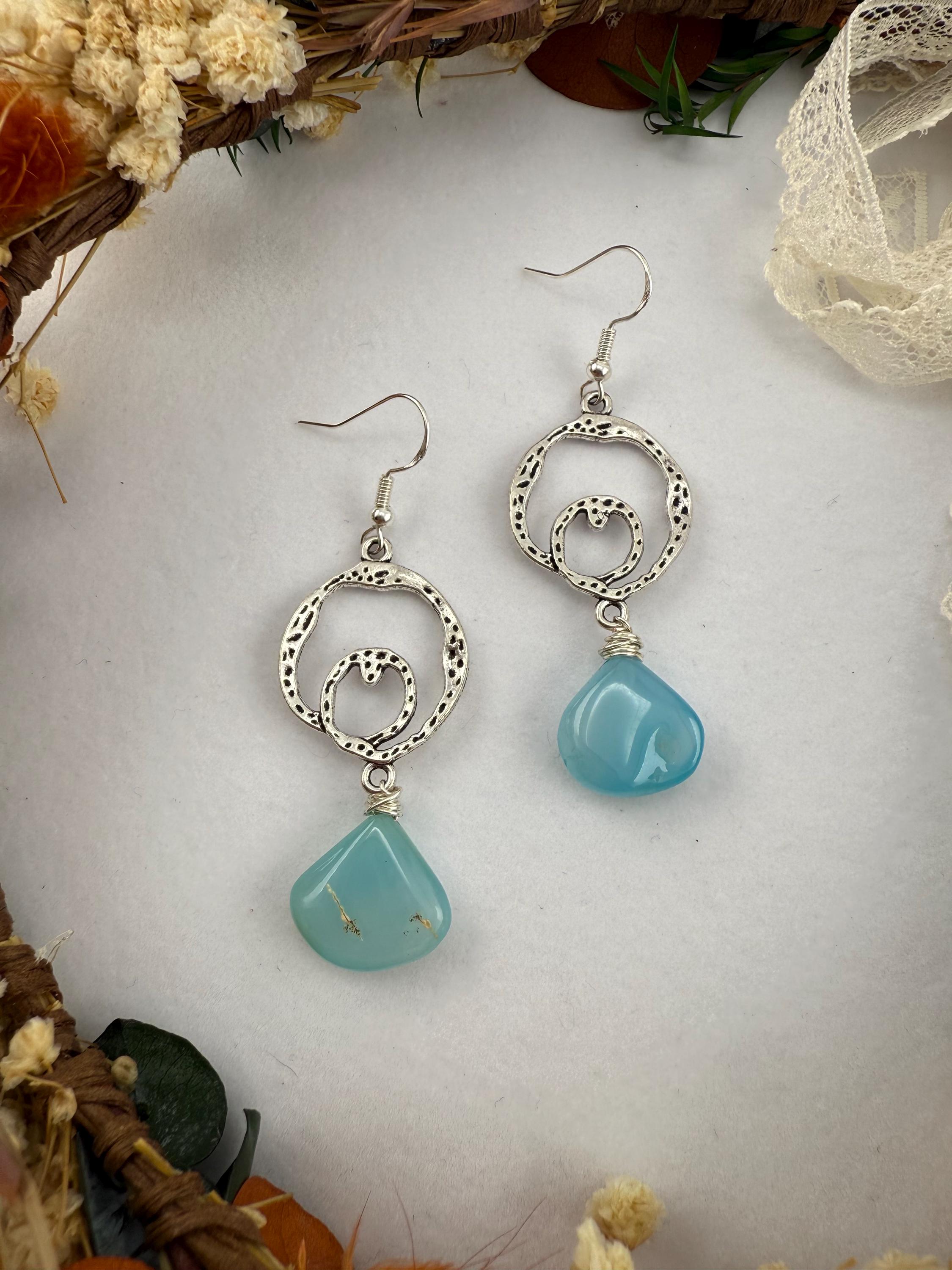 These lovely handmade earrings are so vibrantly colorful, and glorious. From the antique looking frame to the modern teardrop shape of the agate gemstone, you get nothing but win and balance with this delightful design! plus you get all of the color too; with the stunningly beautiful shade of blue!