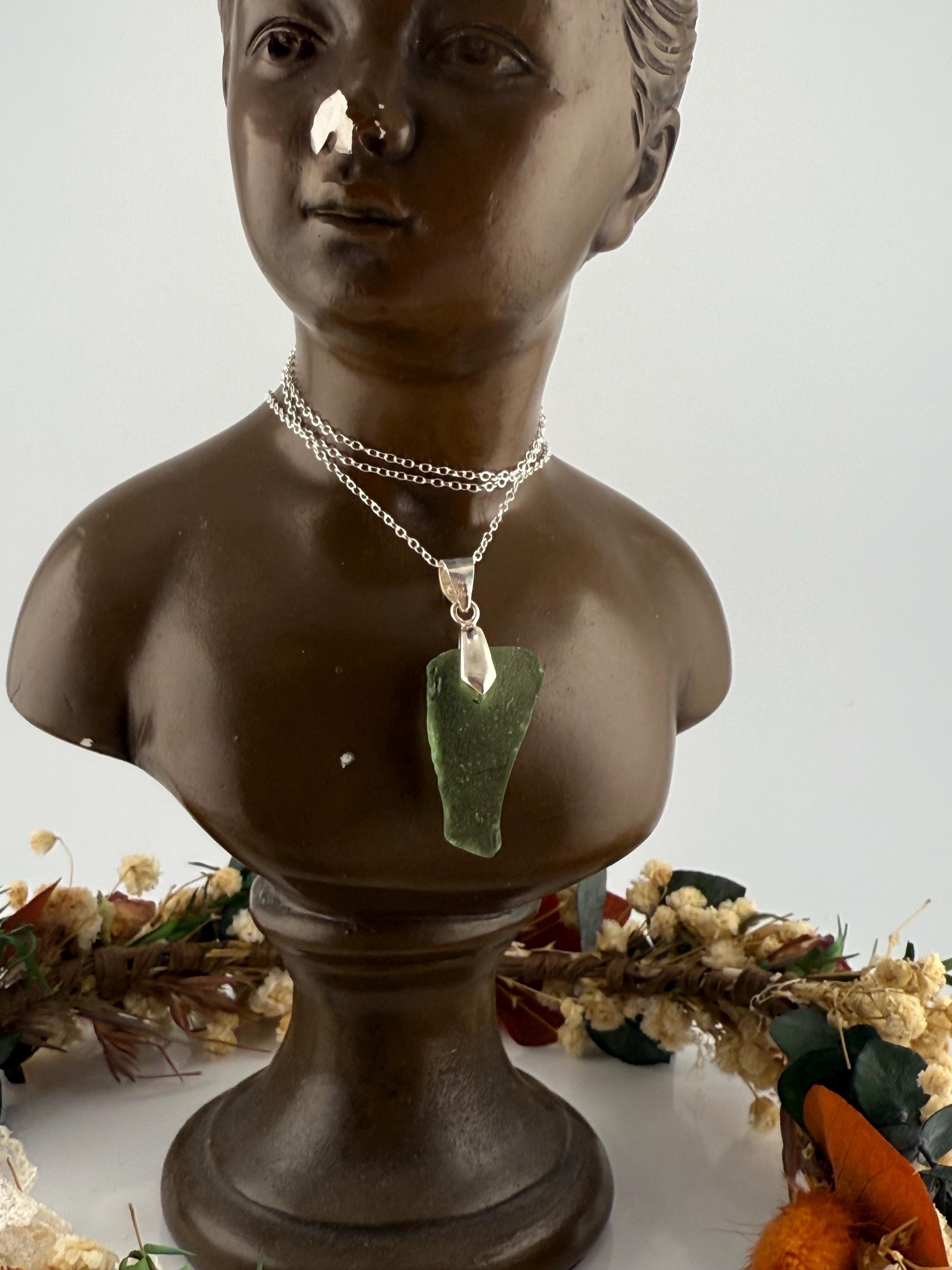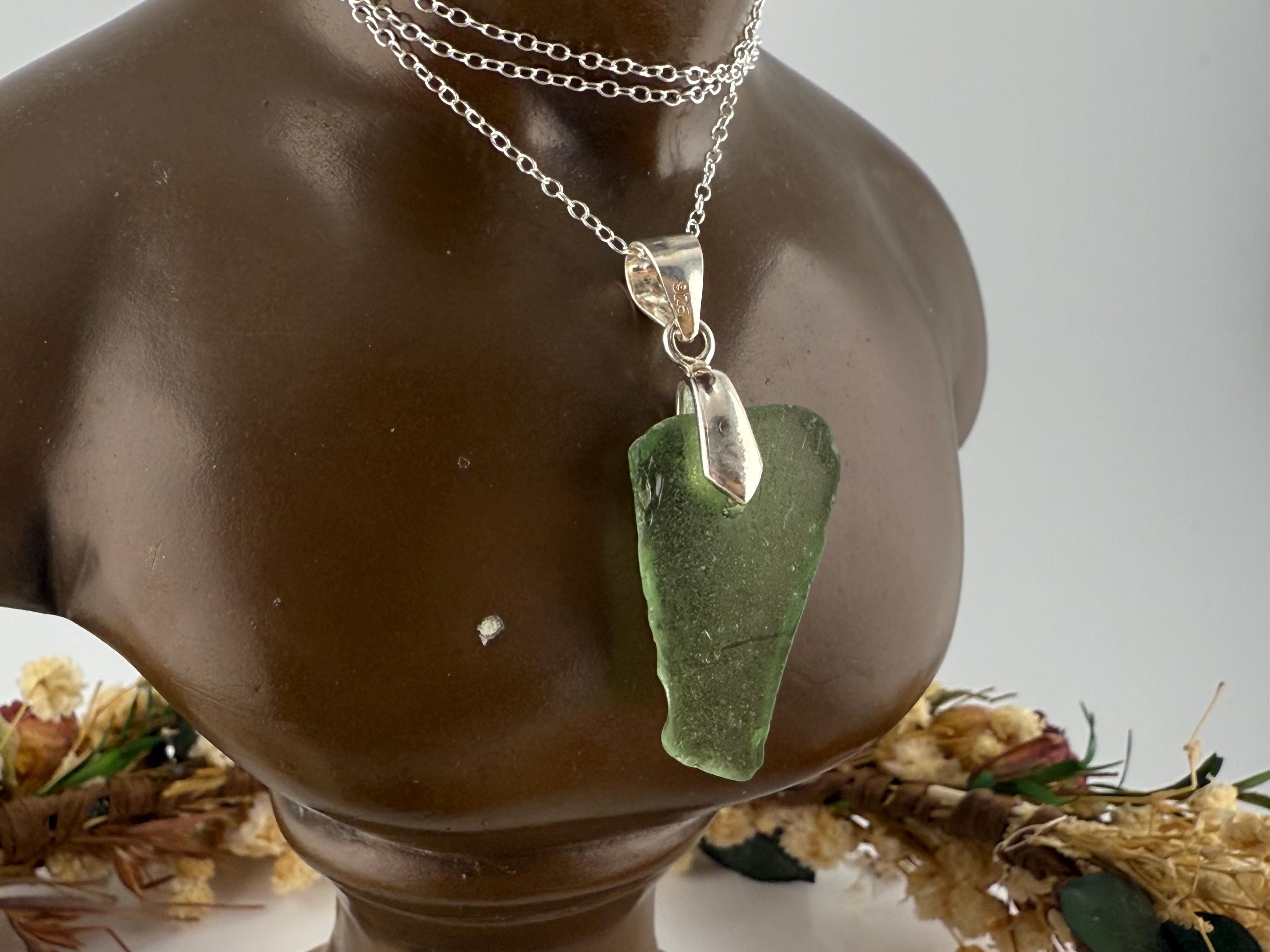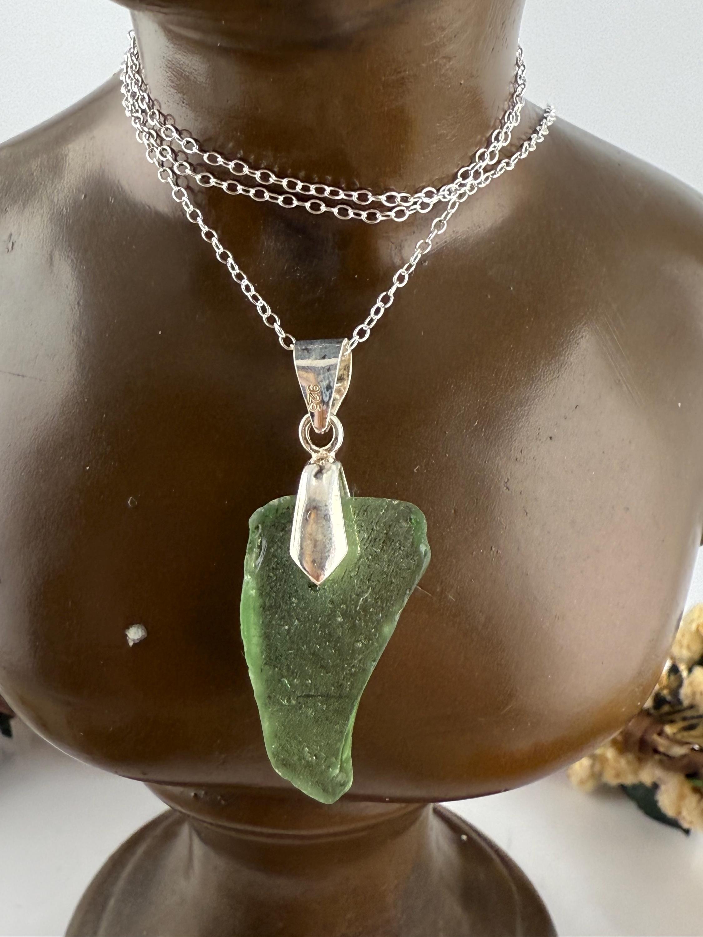 This piece is a beautiful dark green hue, finished with a silver bail and hung from a 1.6mm Figaro Curb silver chain. Rough, not tumbled again, made from its original shape and designed by Mother Nature herself. Piece is smaller then some others but packs a beautiful green color!