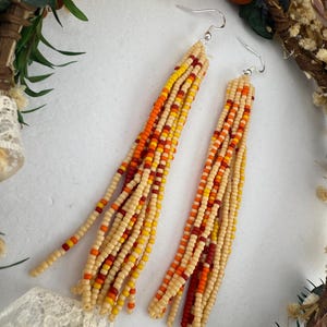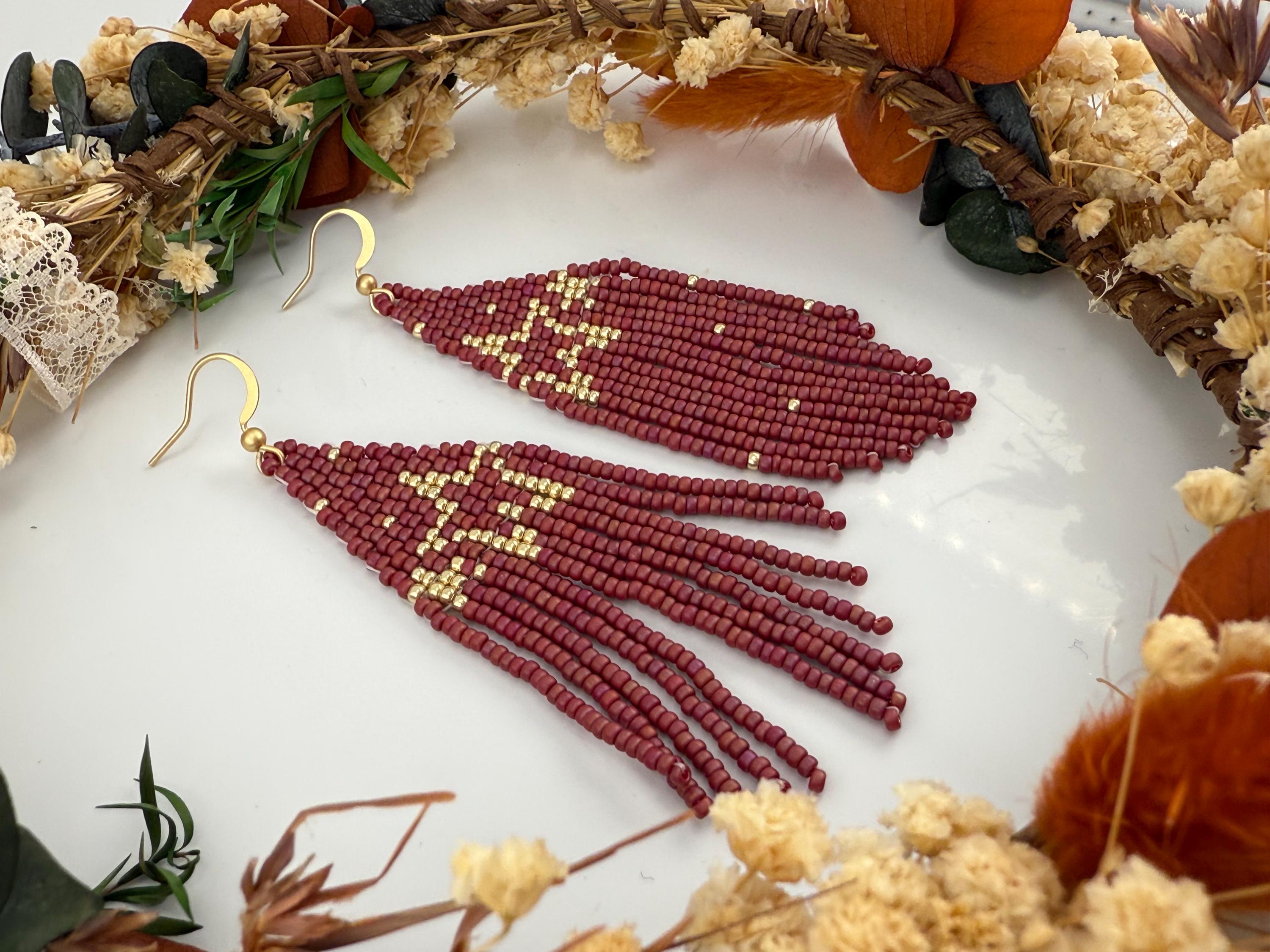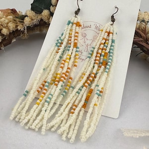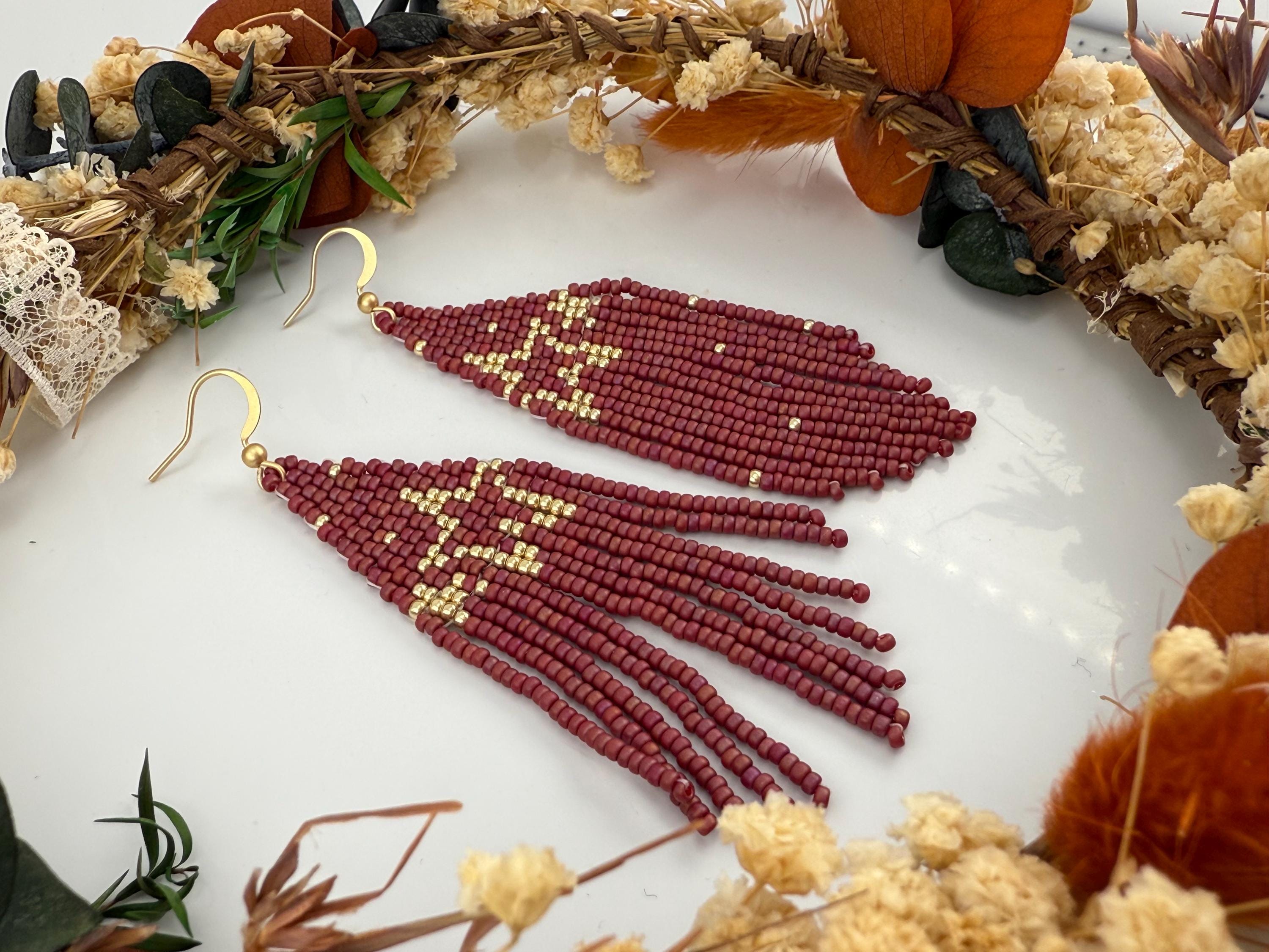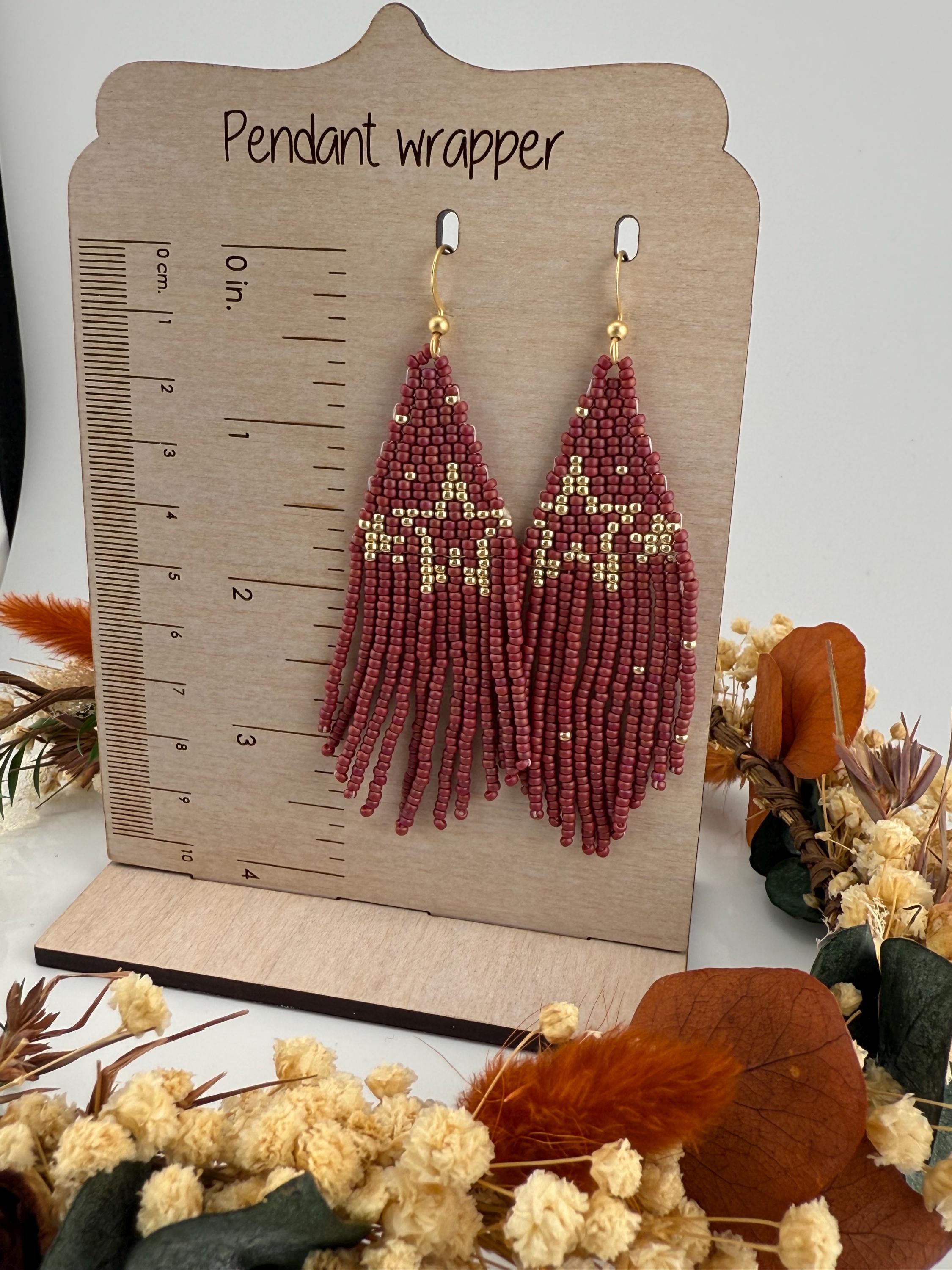 These handmade earrings are a beautiful pearly purple and gold blend with a whimsical star design. Much, much shorter then most of my fringe earrings these are dainty and cute and just enough sparkle to dress up or down. Length is closer to 3.5 inches in total and weight is much less then my traditional fringe.