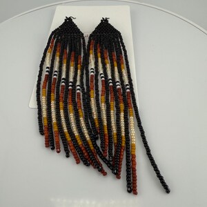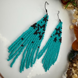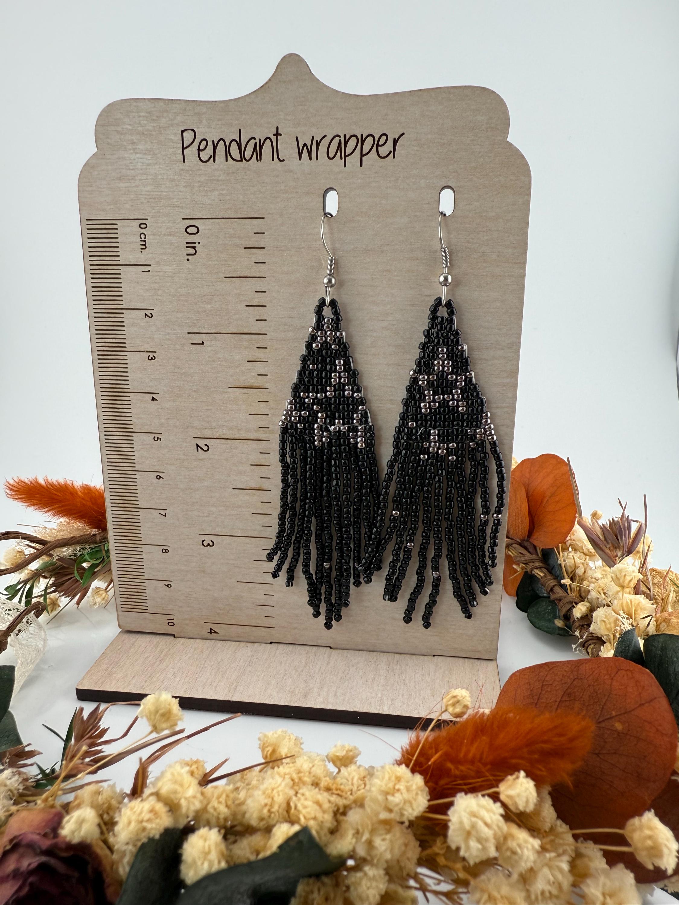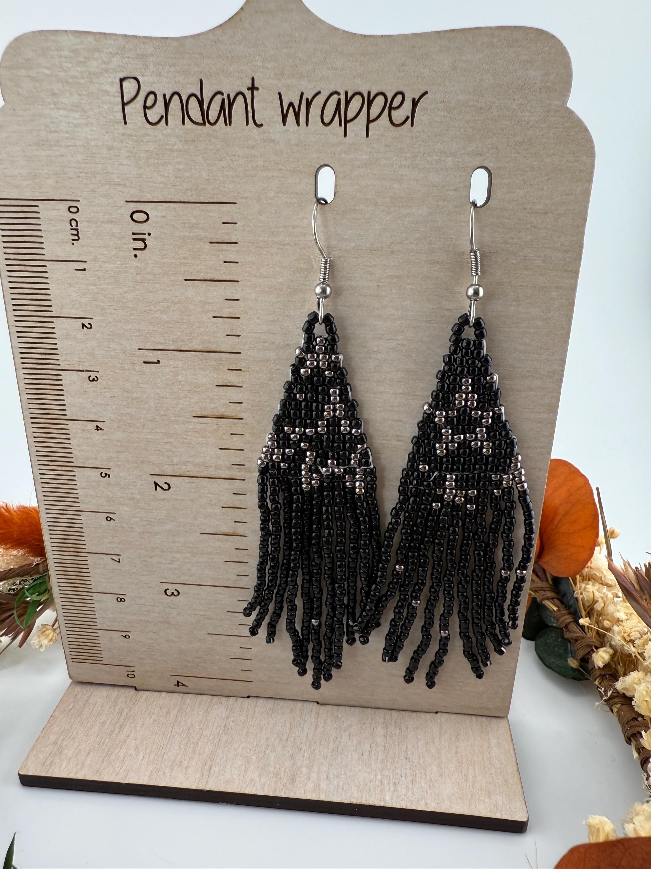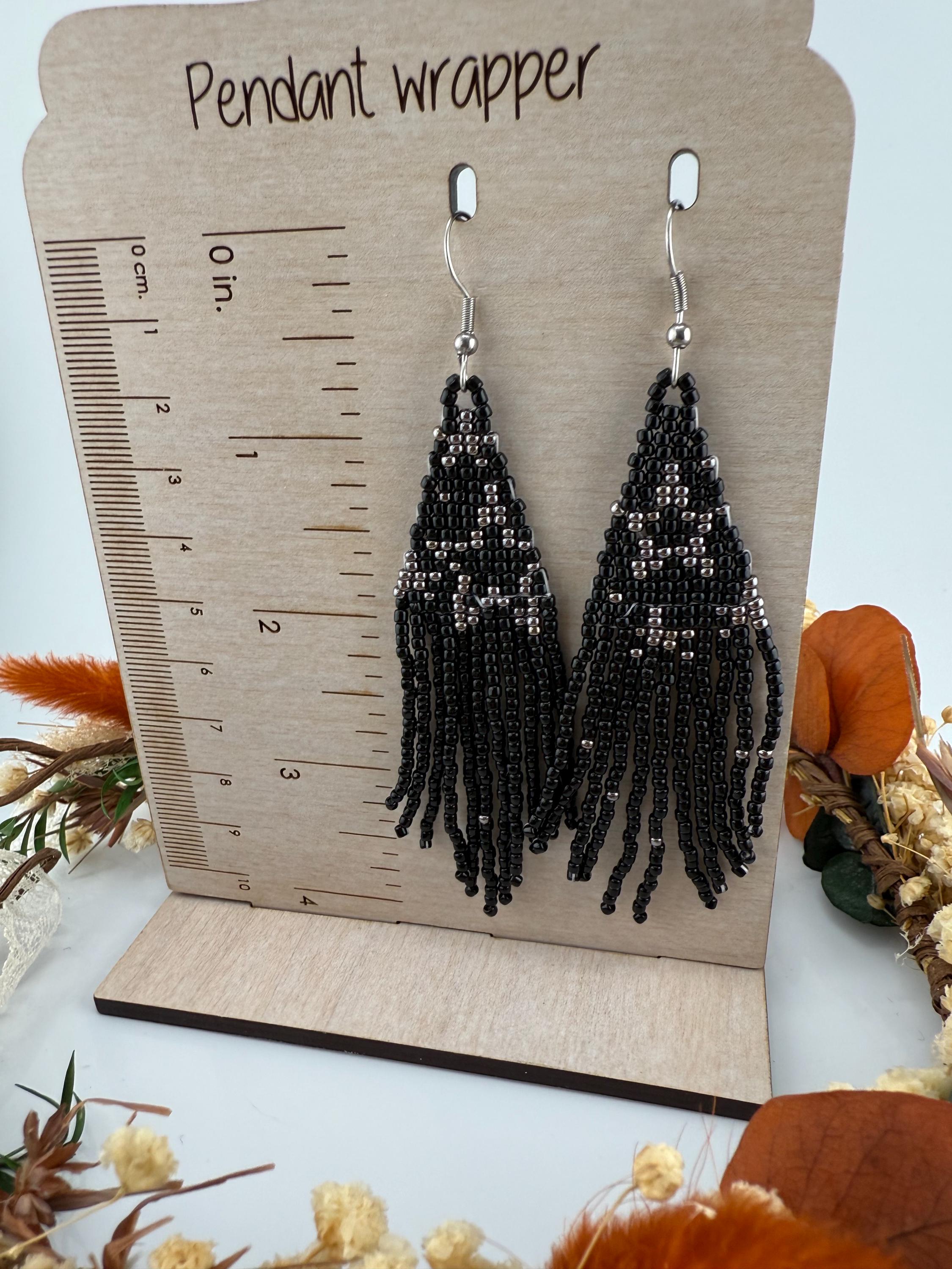 These handmade earrings are a black and silver combination with a whimsical star design. Much, much shorter then most of my fringe earrings these are dainty and cute and just enough sparkle to dress up or down. Length is closer to 3.5 inches in total and weight is much less then my traditional fringe. Perfect to pair with any black dress.
