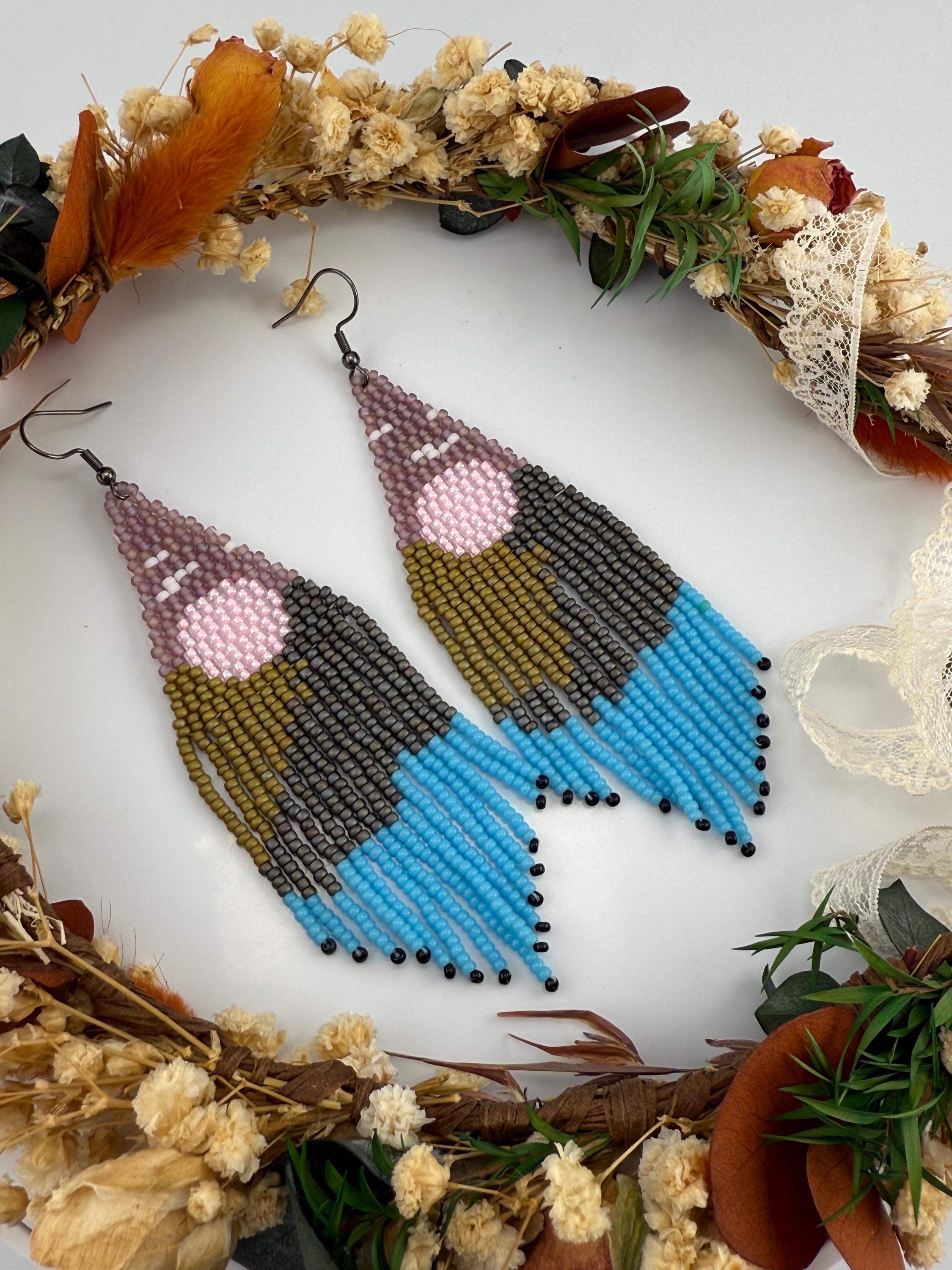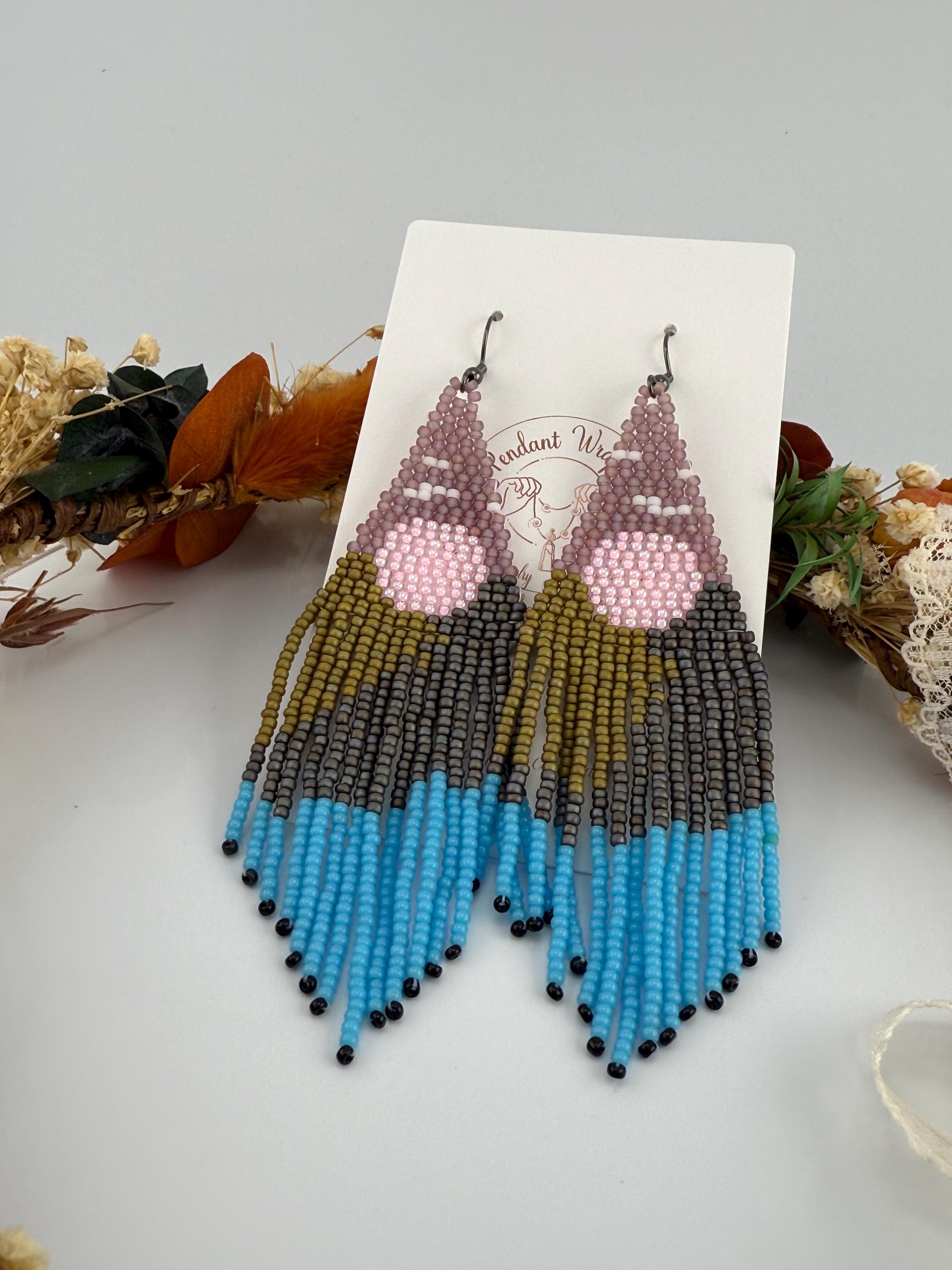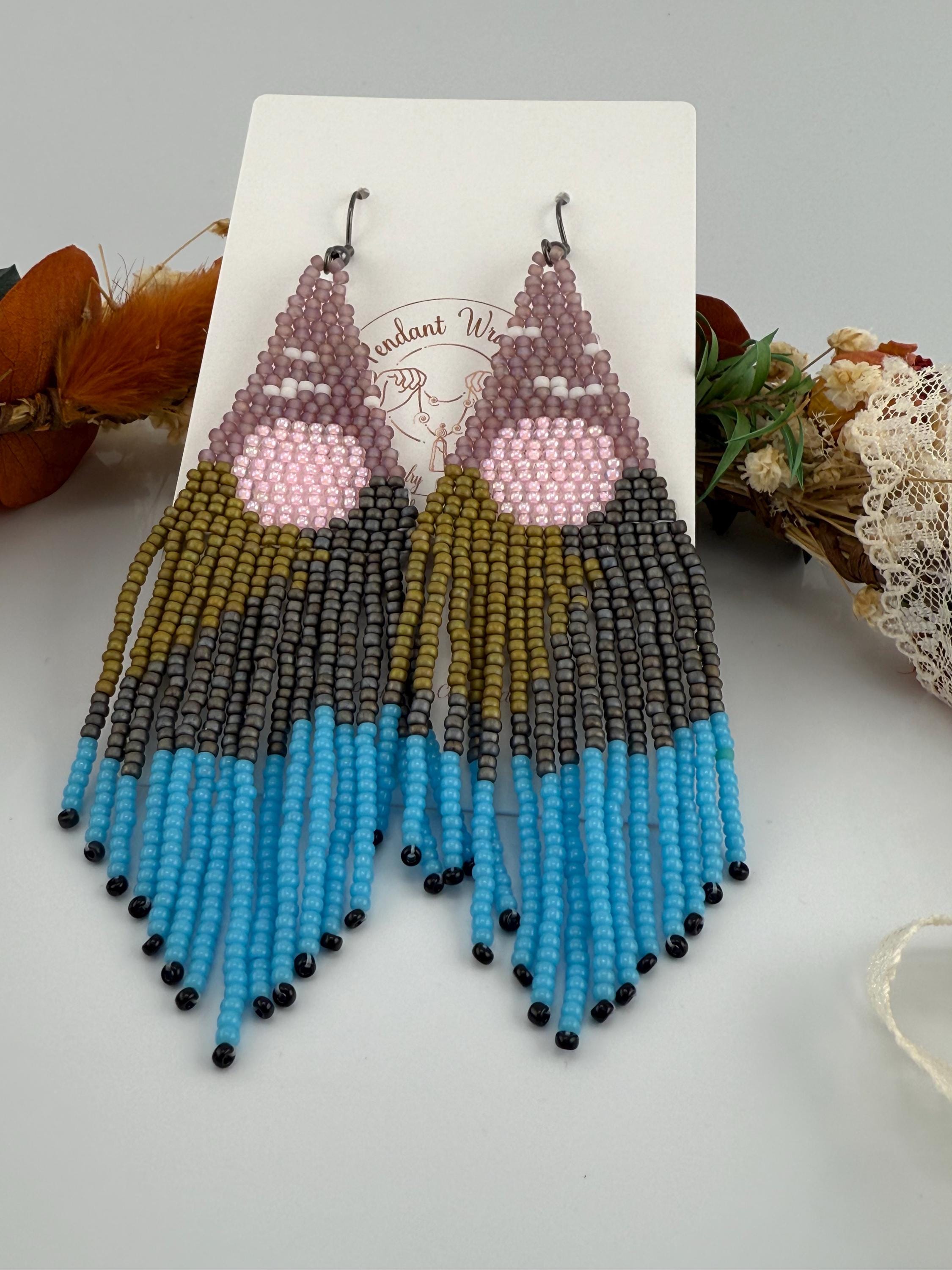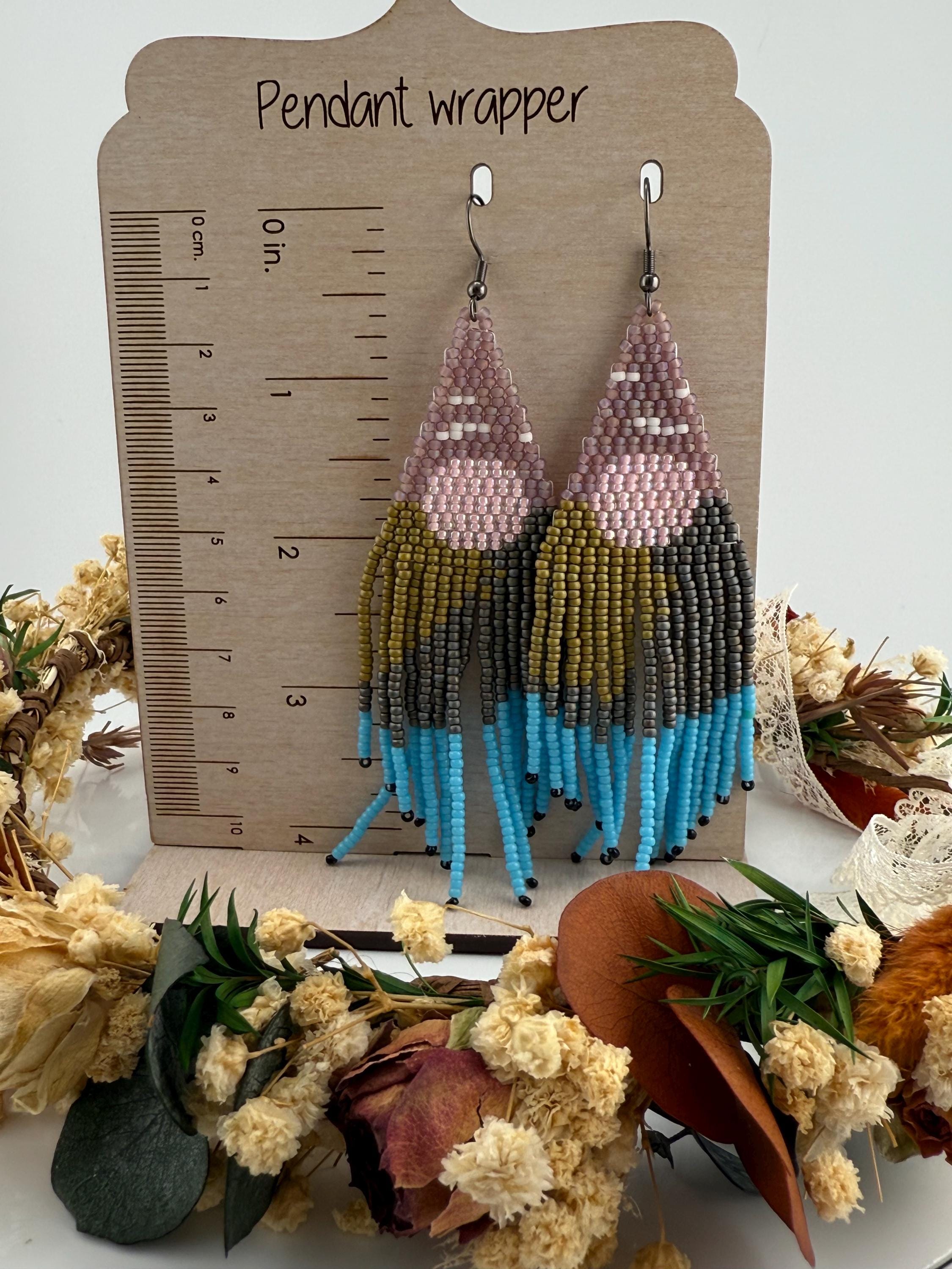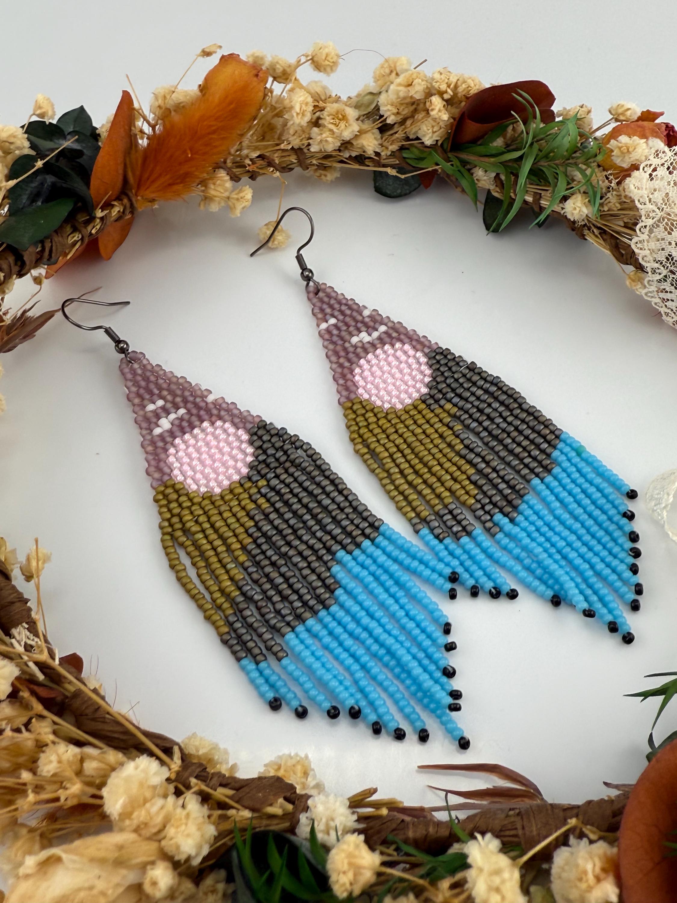 Beautiful sunsets, long roads, mountains and trees is what one sees on a mountain adventure weekend. These earrings are every part of that. These handmade earrings take me about four hours, but the end work is glorious! Mountains, trees, a lake, all part of the scene that makes these so delightful. Must have fringe beauties!